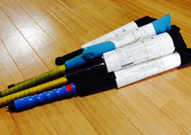 エアーソフト剣に、記入した修理依頼届を巻き付けます。